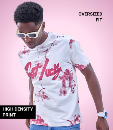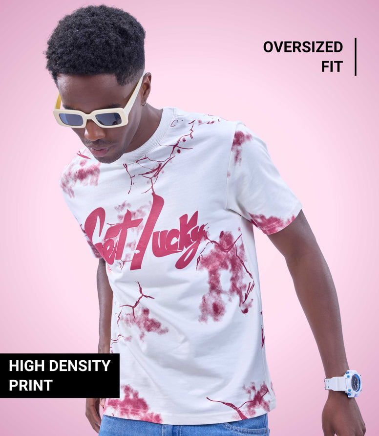 Tap into early Y2K aesthetics and modern streetwear proportions with Auraa Get Lucky Tee, this piece combines chaotic, all-over dye patterns with structural, tactile typography. It’s loud, it's premium, and designed to carry your entire fit.